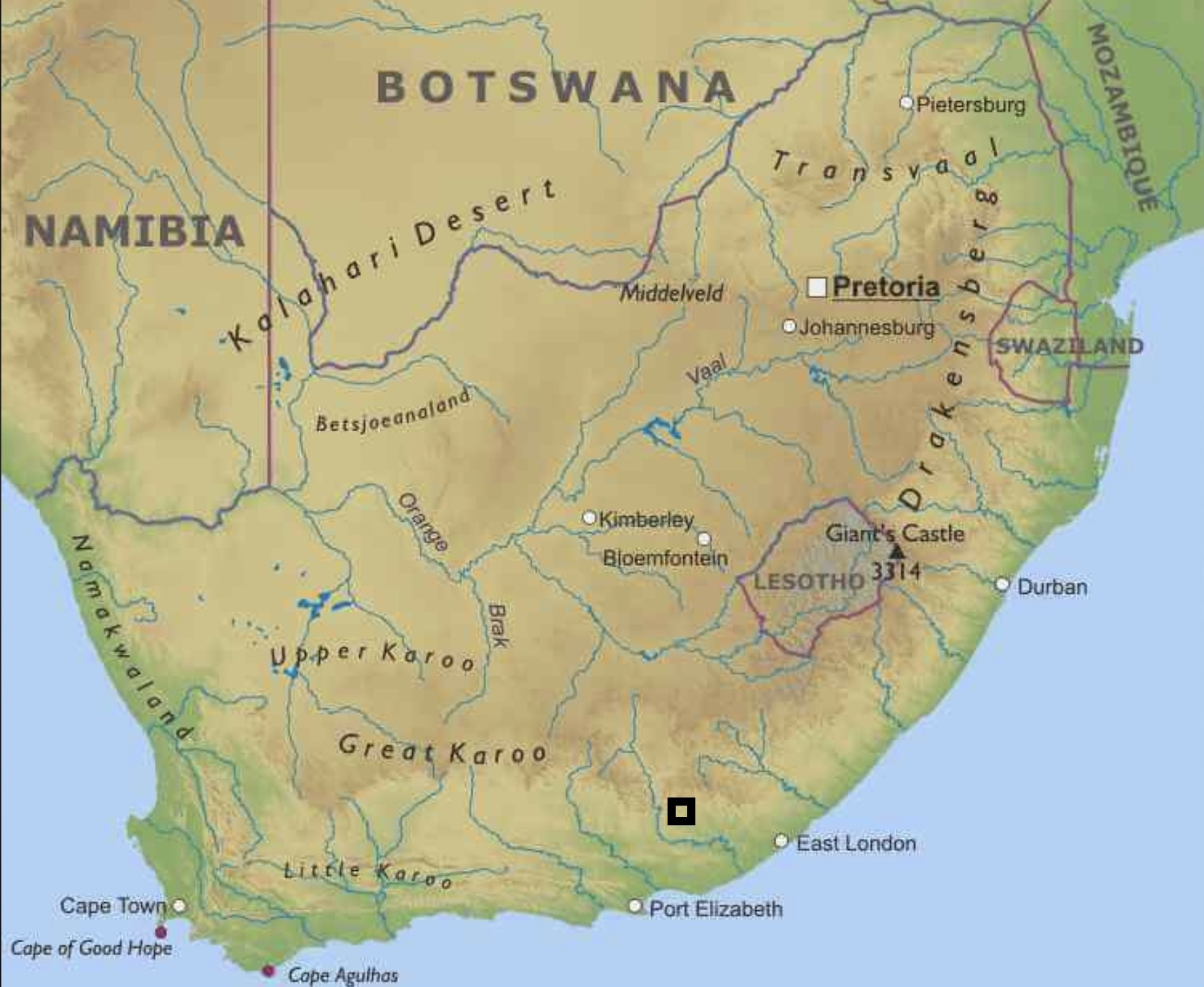 - Eastern Cape Province in the Winterberg mountain range in the Bedford and Cradock districts in open grassland.