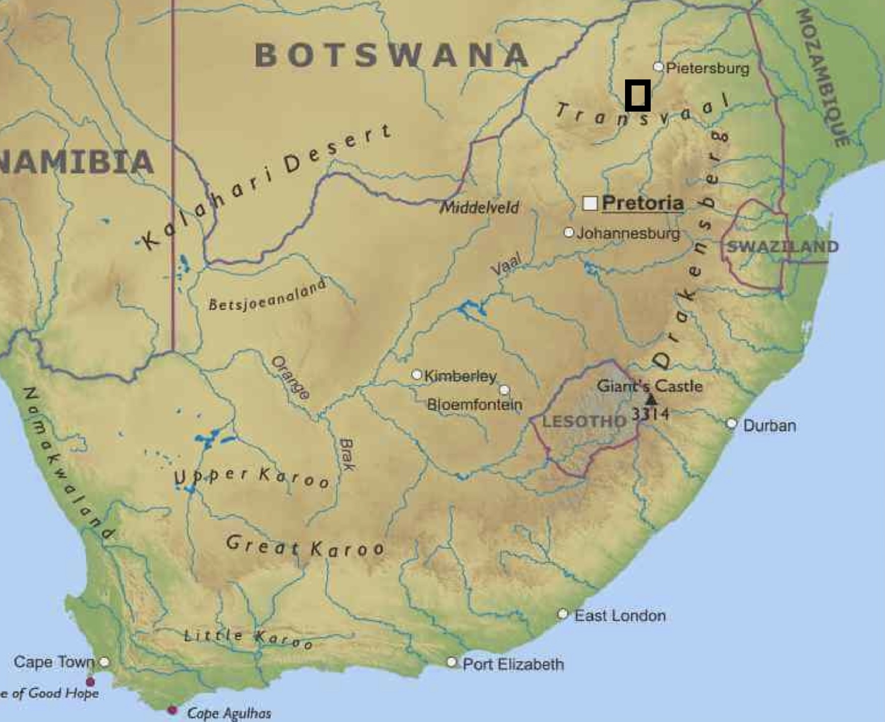 - Northern Province in the Waterberg and adjacent areas.