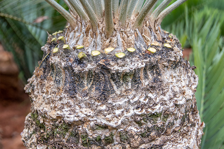 - Apex of the stem is covered with soft whitish cataphylls.