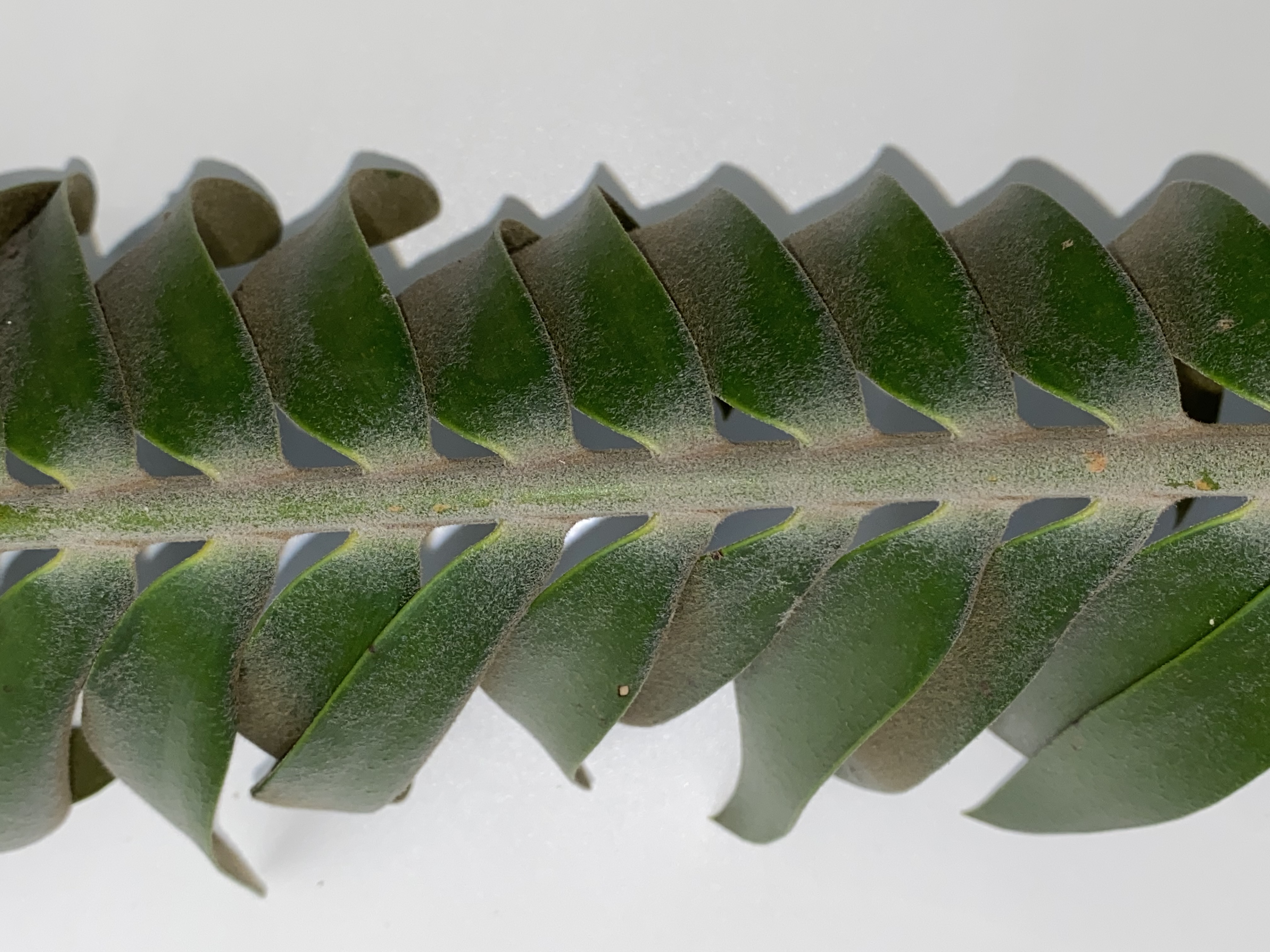 - Stem apex is covered by a dense golden brown woolly layer.