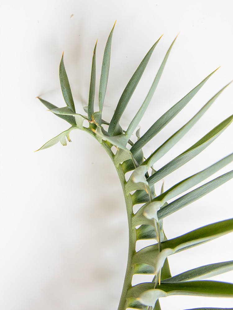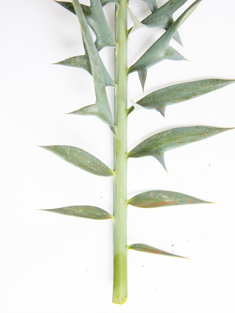 - Upper surface of the leaflets is convex transversely with the leaflet margins rolling inwards.