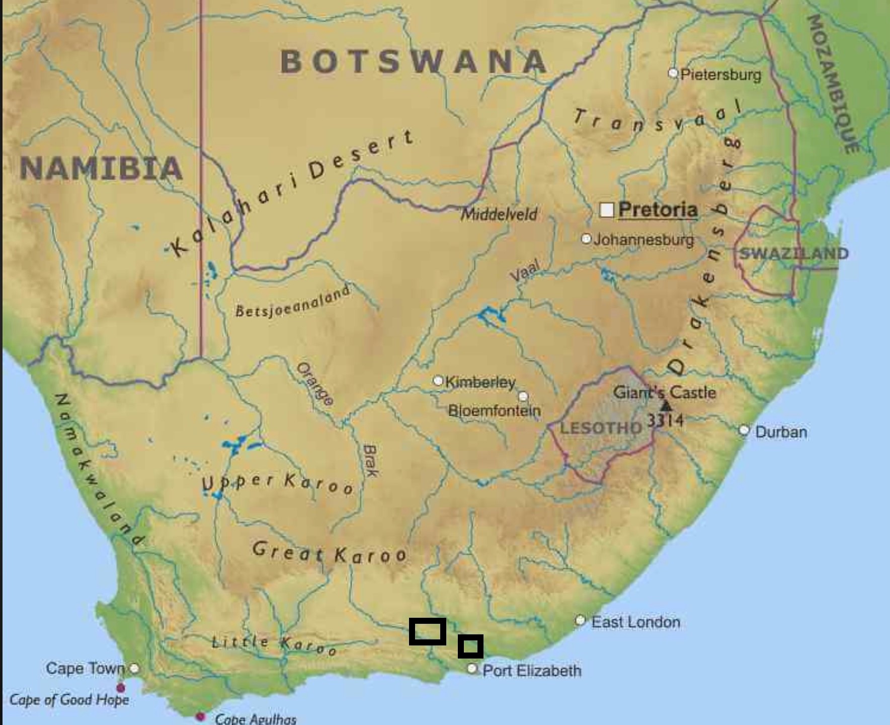 - Eastern Cape Province in Uitenhage district and west of Port Elizabeth in sourveld areas.